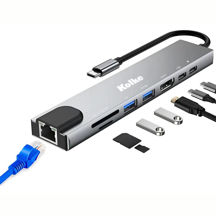 HUB 8 EN 1 TIPO C HDMI-SD-USB 2.0 X 2-USB 3.0 X 2-RJ45