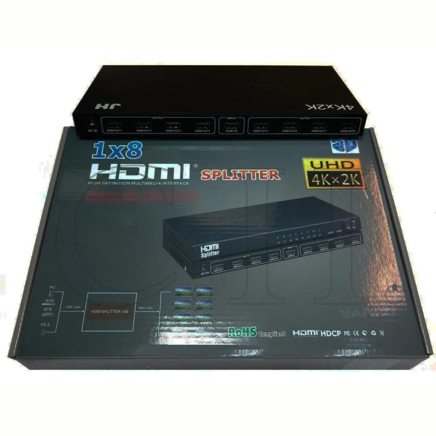 El mini 1x8 divisor HDMI utiliza una única fuente HDMI, accediendo a múltiples disipadores HDMI. El divisor permite que un dispositivo HDMI se divida fácilmente a ocho monitores o proyectores compatibles con HDMI. El divisor también se puede colocar en el extremo de un cable HDMI largo para regenerar la señal HDMI, la resolución de este divisor HDMI puede ser de hasta 3840X2160/30 HZ. Apoyo 3D 4 K x 2 K. 1. Admite HDMI 1.4a 2 Apoyo 3D 3. Admite resolución HDMI de hasta3840X2160/30 HZ 4. Admite una tasa máxima de baudios de 2,25G y un ancho de banda máximo de 225 Mhz 5. Admite color profundo 8/10/12 Bit 6 apoyo Blue-Ray 24/50/60fs/HD-DVD/xvYCC 7. Admite Entrada de hasta 15 metros AWG26 HDMI longitud de cable estándar, salida de hasta 25 metros AWG26 HDMI longitud de cable estándar 7. Muestra una fuente única, fuente de señal de alta definición multisalida del receptor A/V del reproductor de DVD, decodificador Adaptador de corriente 8,5 V/3A