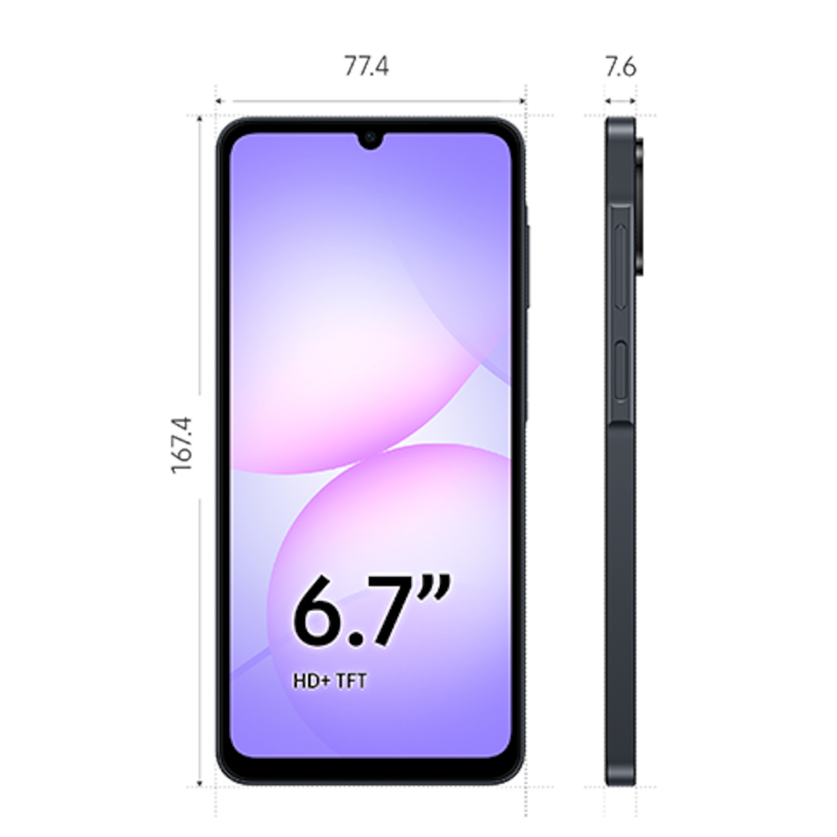 167.4 x 77.4 x 7.6 mm y 184 g de peso, color negro (Black).