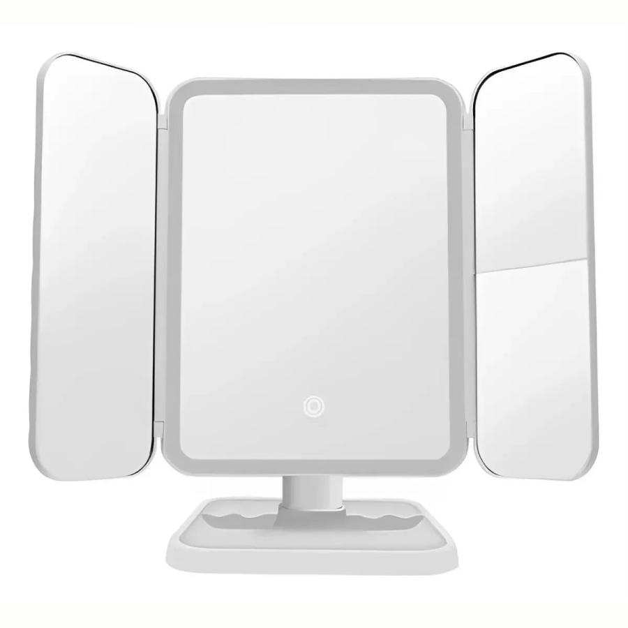 Transforma tu experiencia de maquillaje con este espejo trifold LED, que combina funcionalidad y estilo para un acabado perfecto en todo momento.