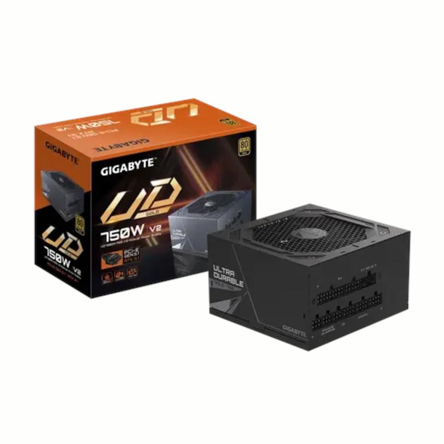 La Gigabyte UD750GM PG5 V2 es una fuente de 750W totalmente modular con certificación 80 Plus Gold, preparada para PCIe 5.0, con ventilador de 120 mm y protecciones integrales. Sus características principales incluyen diseño modular, eficiencia de hasta 90%, y un conector nativo PCIe 16 pines para tarjetas gráficas de última generación.