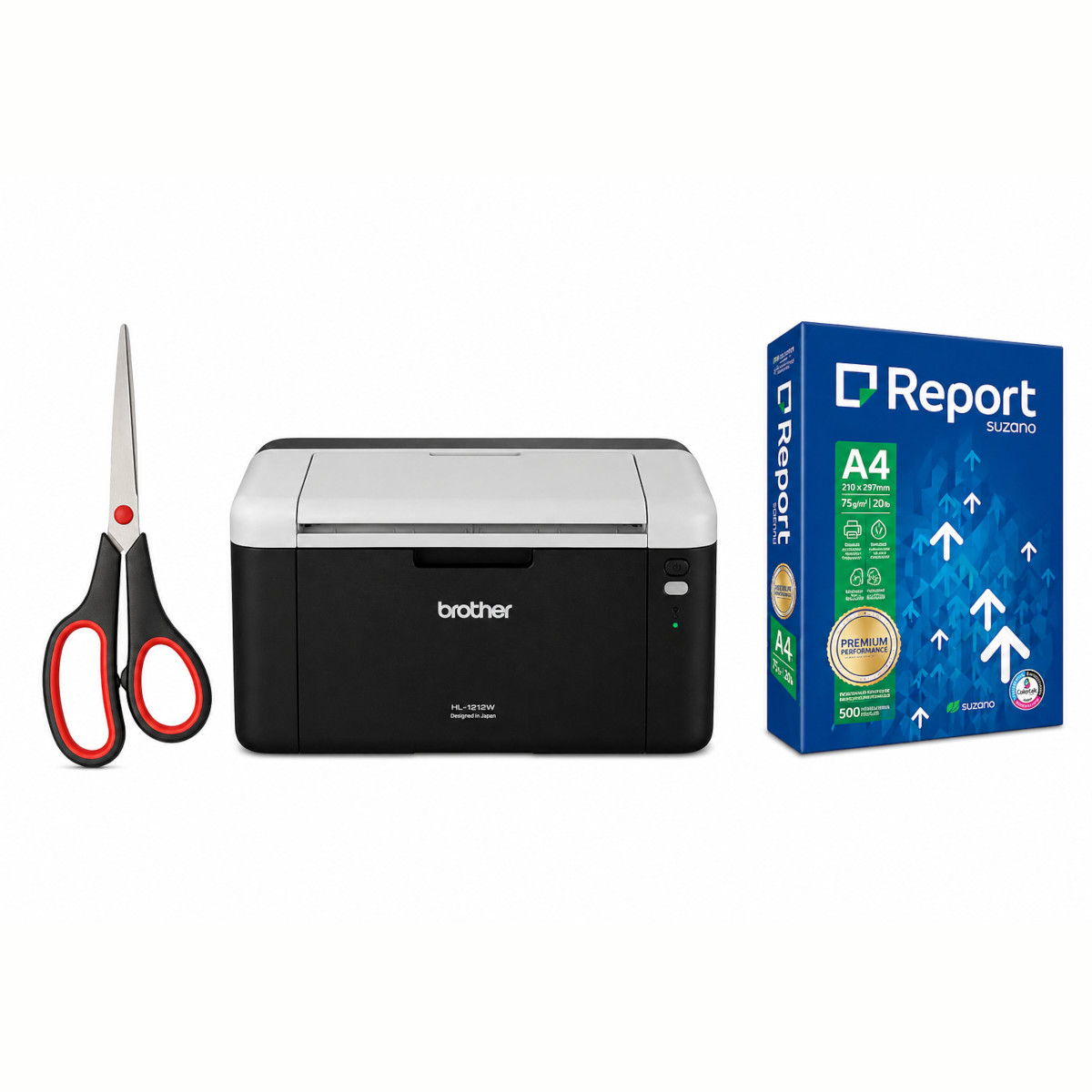 IMPRESORA BROTHER HL-1212W LASER + RESMA A4 + TIJERA
