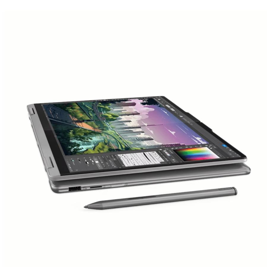 Perfecto desde todos los ángulosDisfruta de la verdadera creatividad desde cualquier ángulo en el portátil Yoga 7 2-in-1. Elige el modo tablet para expresarte con el lápiz digital, el modo visualización para tus presentaciones, el modo stand para tener las manos libres y poder darte un festín, o el modo portátil para rebosar productividad con el panel táctil de gran tamaño. Y su exclusivo diseño de una sola pieza resulta comodísimo de sujetar y transportar.